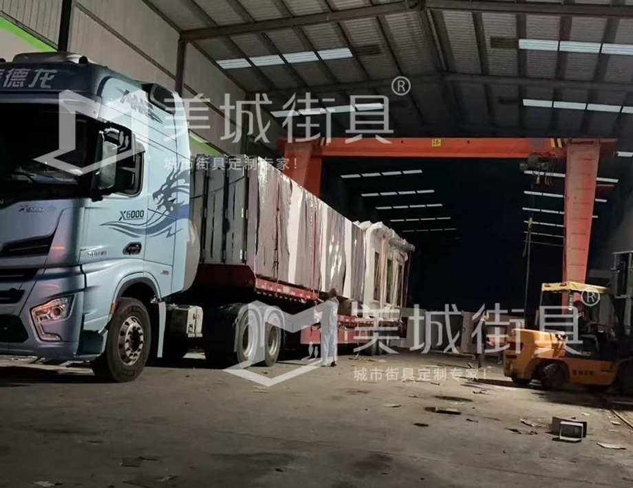 美城街具供應候車亭發貨記錄,以下是公交候車亭發貨現場圖。